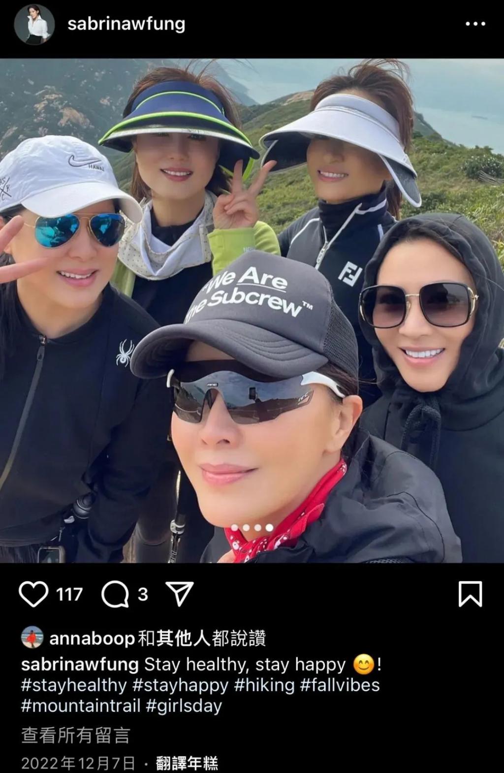▲ 冯咏仪、林诗棋夫妇同刘嘉玲一起爬山。