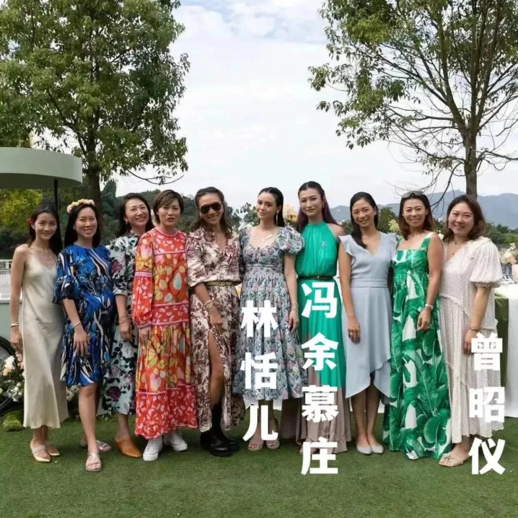 ▲ 派对一众贵妇名媛的合照中,冯余慕庄与林建岳长女林恬儿稳居C位,照片中还有何超琼干女儿曾昭仪。(我们刚写过曾昭仪等香港名媛的故事,点这里回顾)
