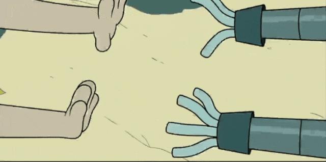 而为了填补这个洞,兔子直接敲断了机器人的一条腿。