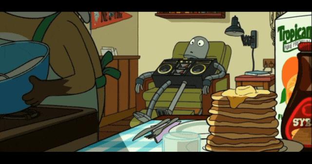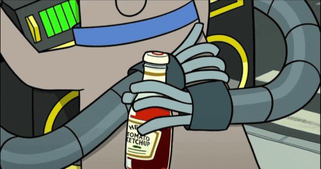 忽然番茄酱落地,猛得将机器人拉回现实,这是机器人的最后一个梦了。