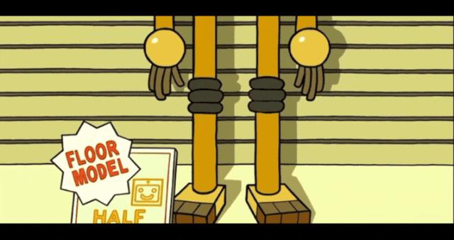 直至商店的尽头,一个有着和老机器人一样眼睛的黄色机器人终于吸引了小狗的目光。