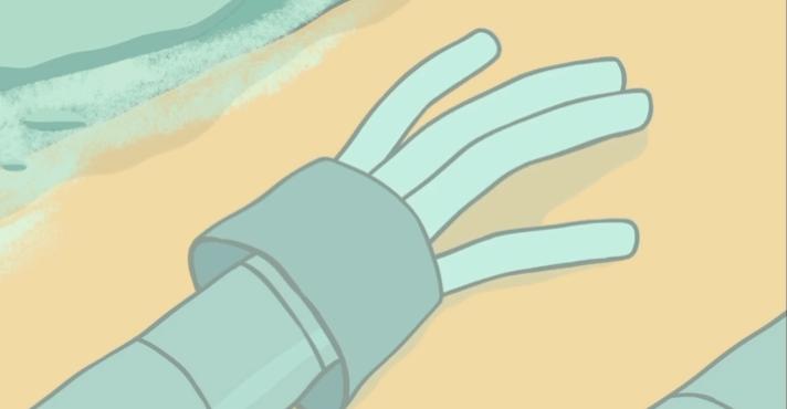 而机器人则依旧躺在沙滩上一动不动。
