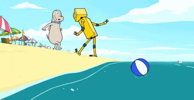 那天小狗带着机器人去海边玩,一切的一切都显得如此美好。