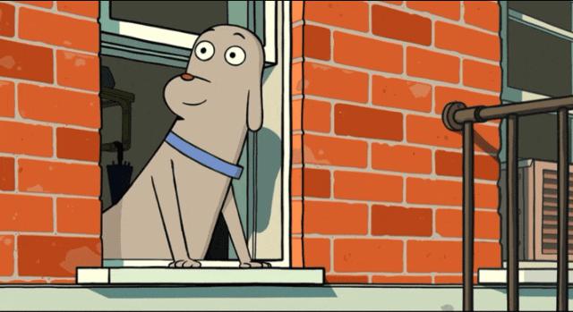 小狗似是发现了机器人的存在,但这一次机器人却躲在了窗后...