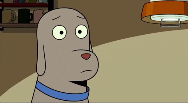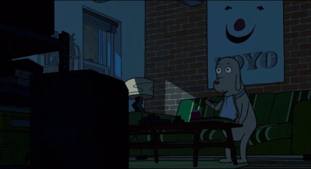 一旁的小狗为他关掉电视、