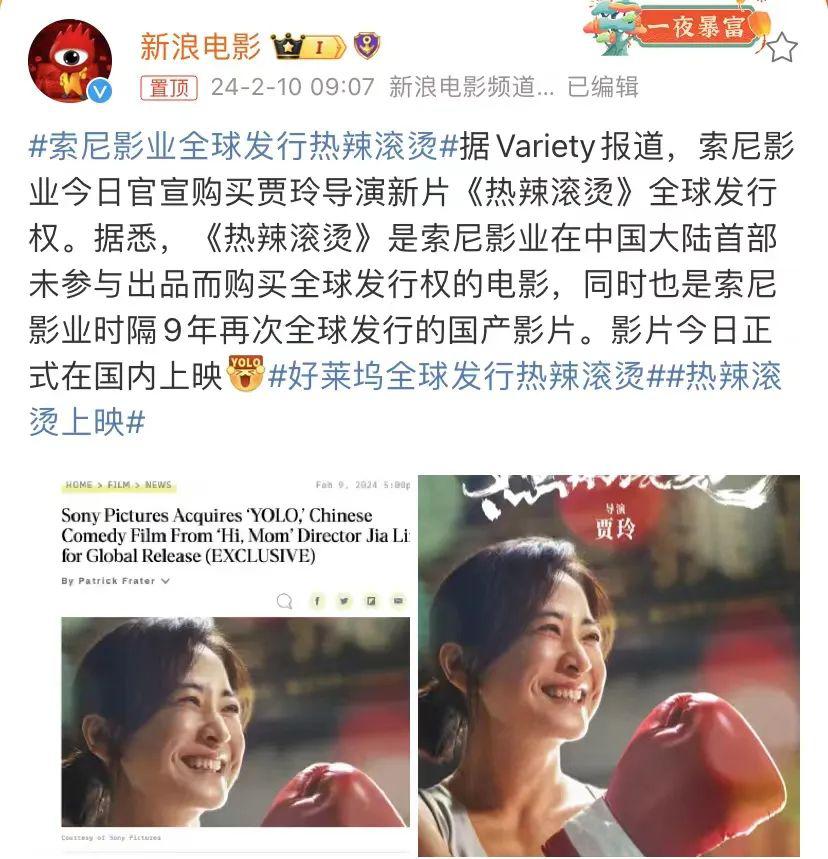 好莱坞索尼影业宣布买下了《热辣滚烫》的全球发行权,这也是索尼影业时隔九年再次全球发行的国产影片。