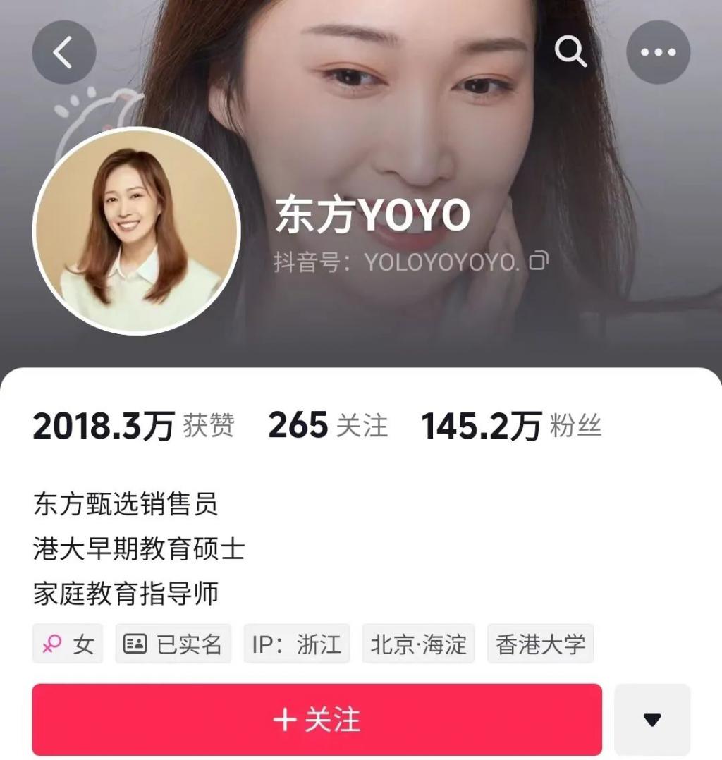 YOYO 的抖音签名列举了她的三个身份
