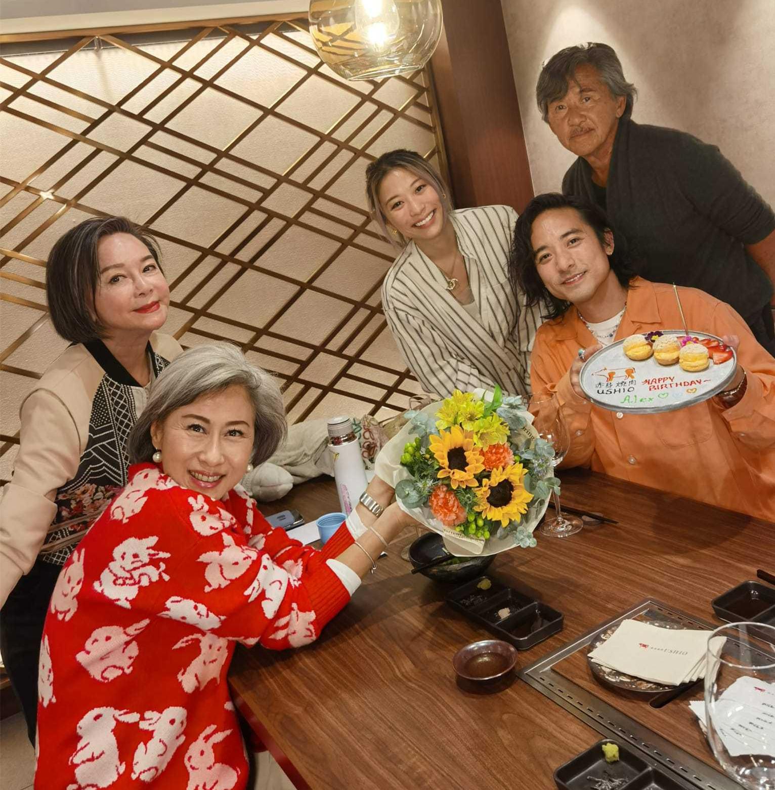 最近,林子祥儿子林德信迎来38岁生日,老爸林子祥、继母叶倩文、女友Candace以及查小欣特意聚在一块庆祝。众人相聚在某高级餐厅吃大餐,品尝了美味的烤肉以及喝了红酒香槟,十分惬意。