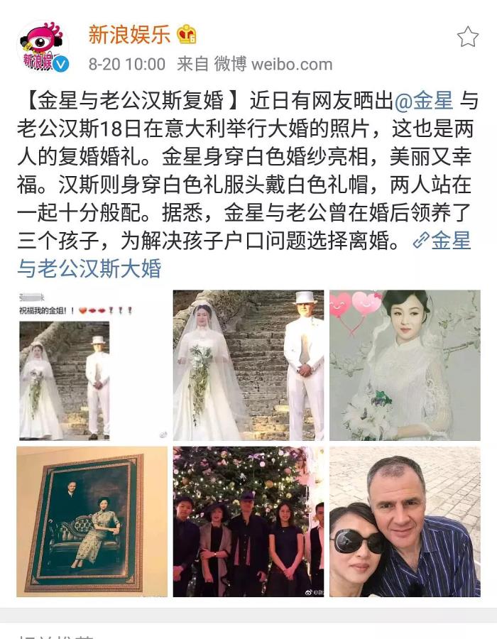 昨日最爆炸的新闻就是金星和汉斯复婚的消息了。一说起金星和汉斯复婚可能金额绝大多数的网友都是非常的纳闷,因为金星和汉斯早就结婚了,而且两个人一直都是十分的恩爱,何来的复婚之说呢?