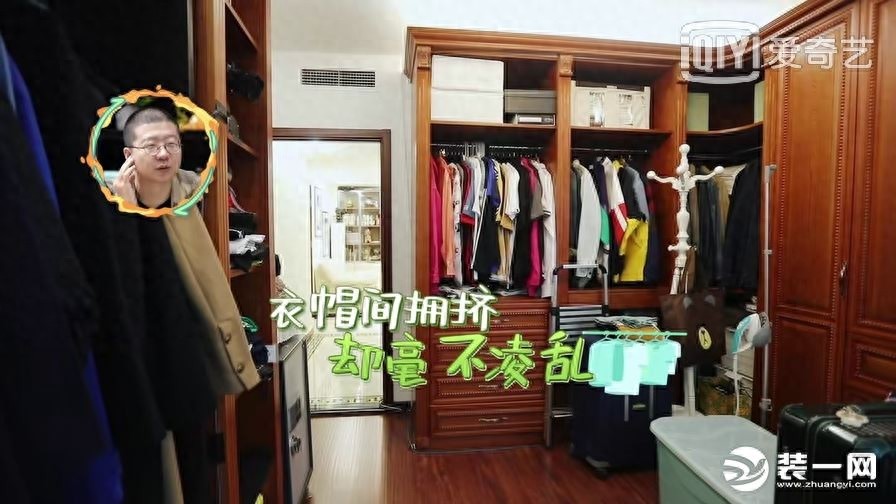 魏大勋家的衣帽间算是比较大了,因为艺人的身份需要出席各种场合,所穿的衣服也会有点多,所以可以看出整个衣帽间大部分都是魏大勋的衣服。定制的美式实木衣柜在这个房间里显得精致庄重。