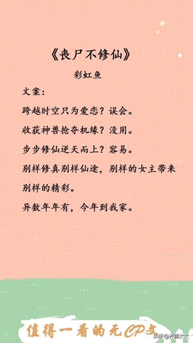 《丧尸不修仙》我之前才单本推荐过,绝对是我今年来看过最好看的修仙文,也是最长的文,整体爽文,女强文,设定清奇,剧情完整而跌宕起伏,整体来说除了长一点没啥太大毛病!感兴趣的可以去看看我那一期单本书评!