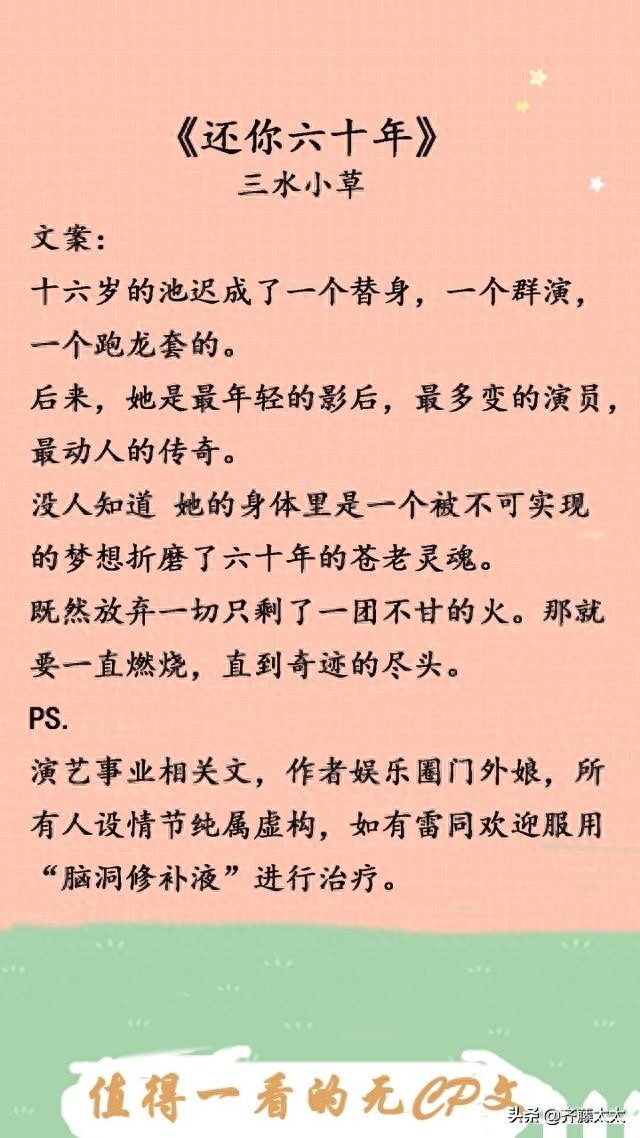 三水小草是我挺喜欢的作者,《心有不甘》,也是无CP,这一本口碑也不错!