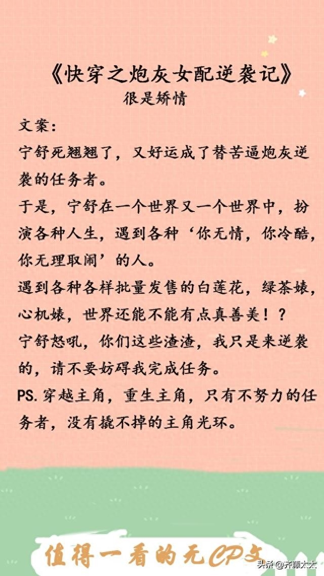 炮灰女配那本据说前两个小故事不好看,但是后面越看越好看的文,我下次打算去看看!