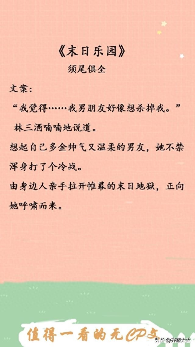 《末日乐园》一看文案就是独特的暗黑系文笔,下一本安排上,我会去帮你们排雷的!