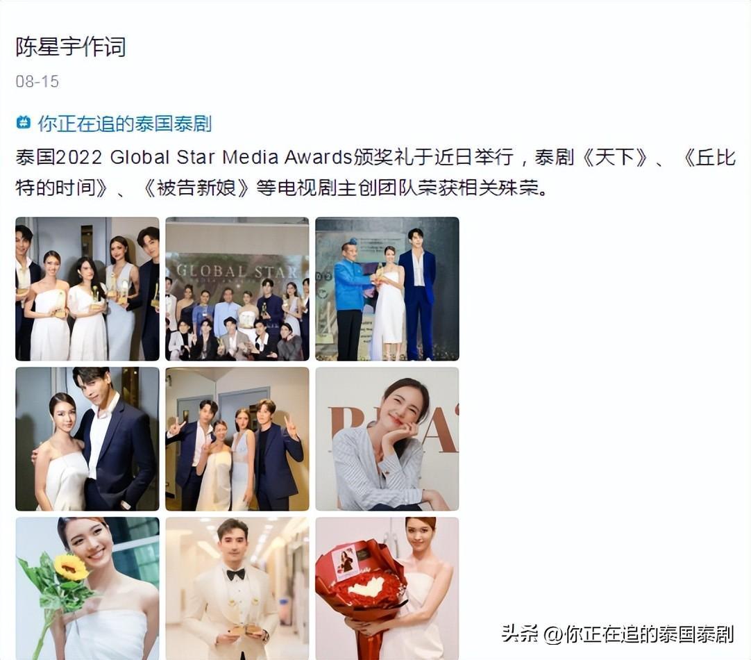 泰国2022 Global Star Media Awards颁奖礼于近日举行,泰剧《天下》、《丘比特的时间》、《被告新娘》等电视剧主创团队荣获相关殊荣。
