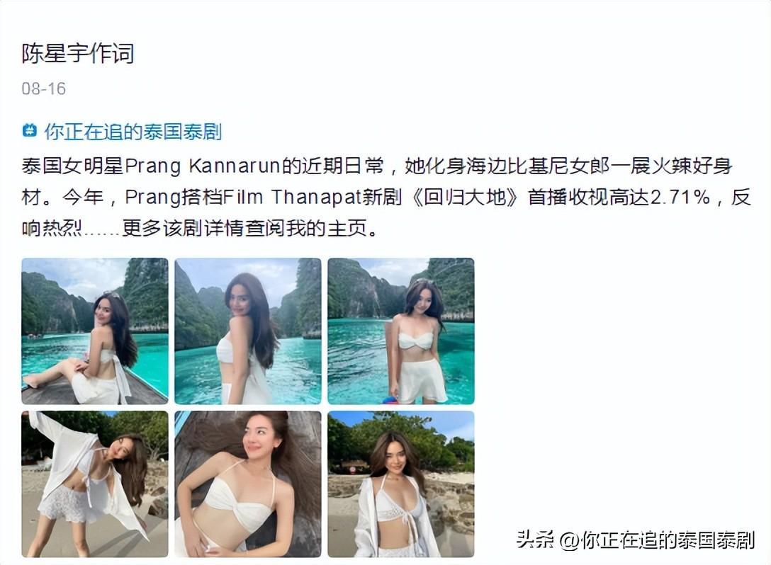 泰国女明星Prang Kannarun的近期日常,她化身海边比基尼女郎一展火辣好身材。今年,Prang搭档Film Thanapat新剧《回归大地》首播收视高达2.71%,反响热烈......更多该剧详情查阅我的主页。