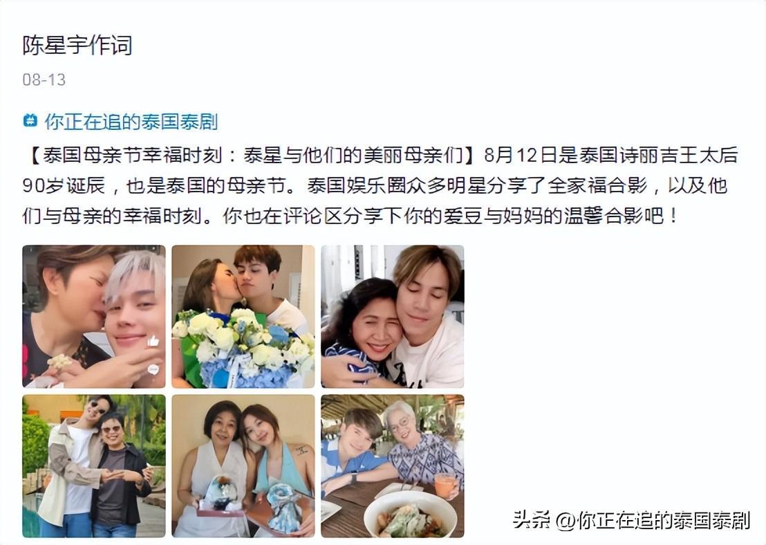【泰国母亲节幸福时刻:泰星与他们的美丽母亲们】8月12日是泰国诗丽吉王太后90岁诞辰,也是泰国的母亲节。泰国娱乐圈众多明星分享了全家福合影,以及他们与母亲的幸福时刻。你也在评论区分享下你的爱豆与妈妈的温馨合影吧!