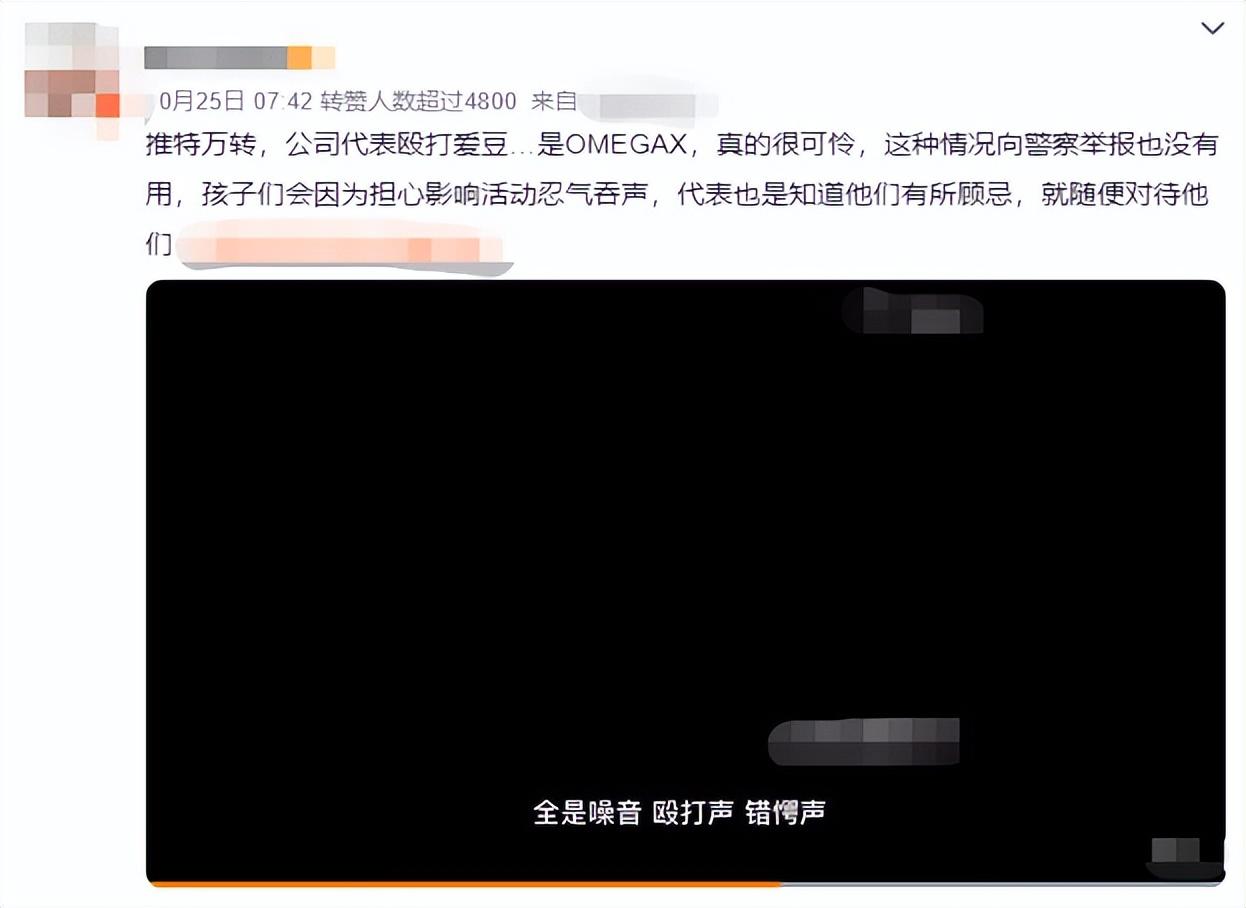 OMEGAX组合成员被公司代表辱骂殴打,音频中有打人的声音,也有被打艺人失声痛哭的声音,听起来令人心惊。