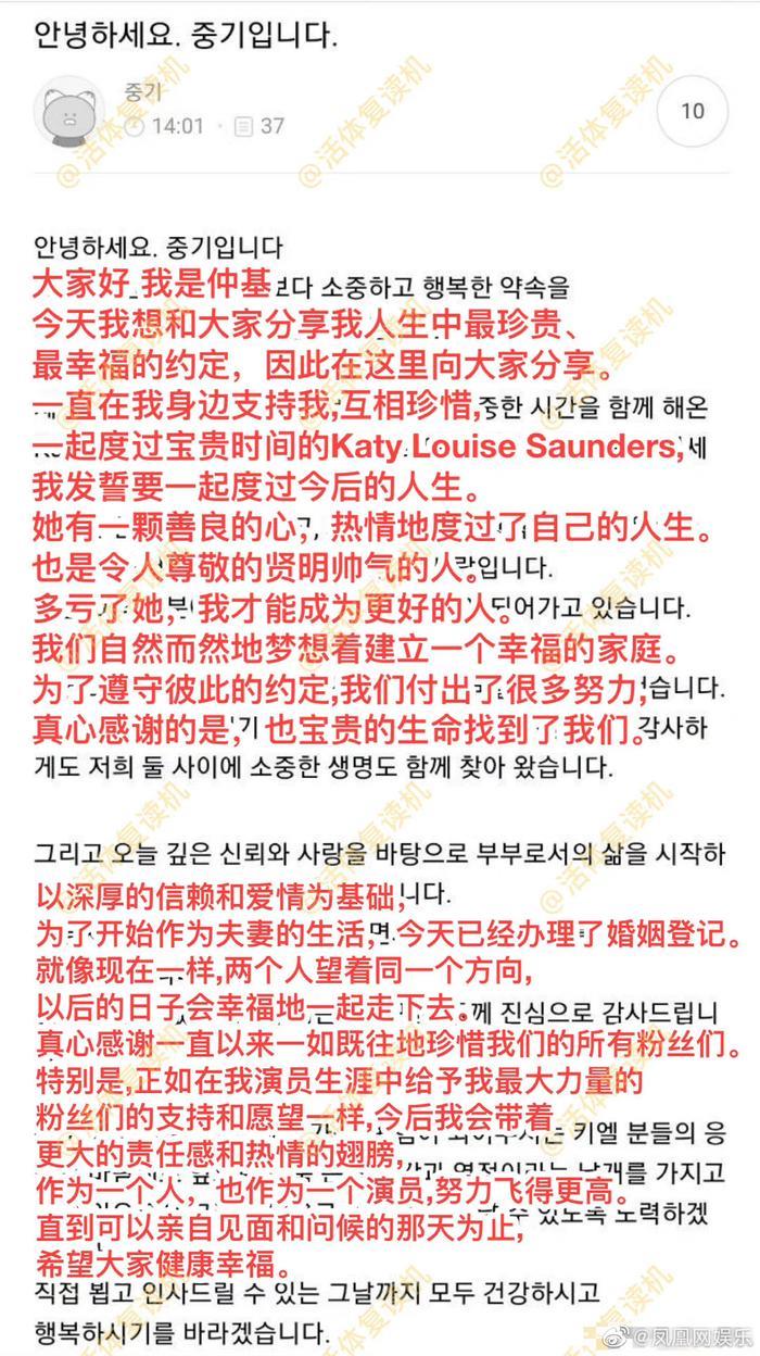 【#宋仲基官宣再婚当爸# 】1月30日,宋仲基发文官宣结婚当爸:“今天以深厚的信赖和爱情为基础,开始夫妻生活,还拥有了宝贵的新生命。我们将朝着同个方向,共同美好地度过未来。”宋仲基所属公司相关人士表示:“宋仲基和Katy Louis Sounders将举行婚礼,但时间还未定。”2025年12月,宋仲基公开与英国女友的恋情,恋情公开后,还有传闻称女方已怀孕,对此经纪公司表示除了交往之外无法确认。 #宋仲基再婚将办婚礼#