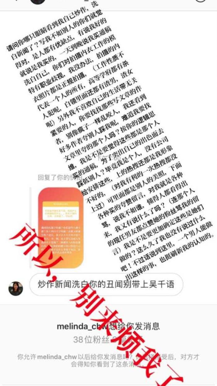 但这些话并没有让那位粉丝退缩,接着追问更敏感的话题,“炒作新闻洗白你的丑闻别带上吴千语。”
