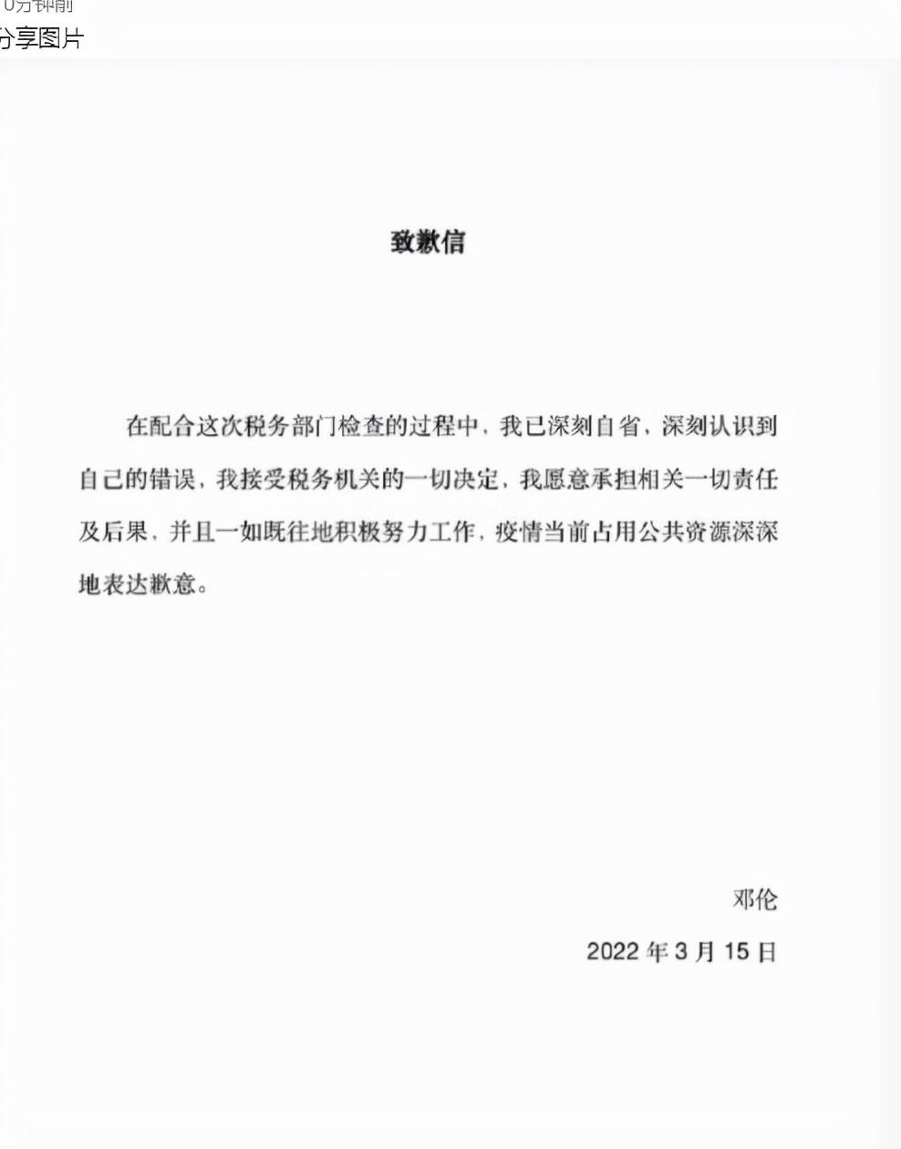 随后,邓伦在微博公开致歉信。称会承担一切责任和后果。