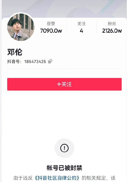 也有细心的网友发现,邓伦的某音账号已被封禁。