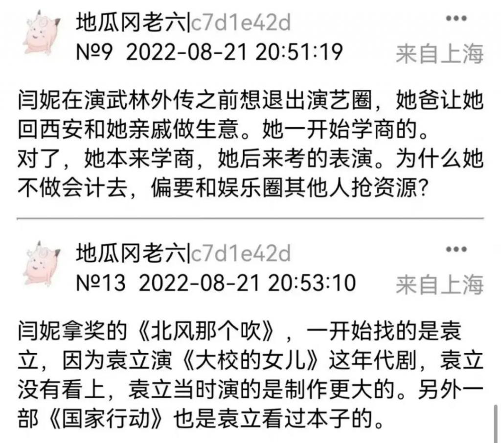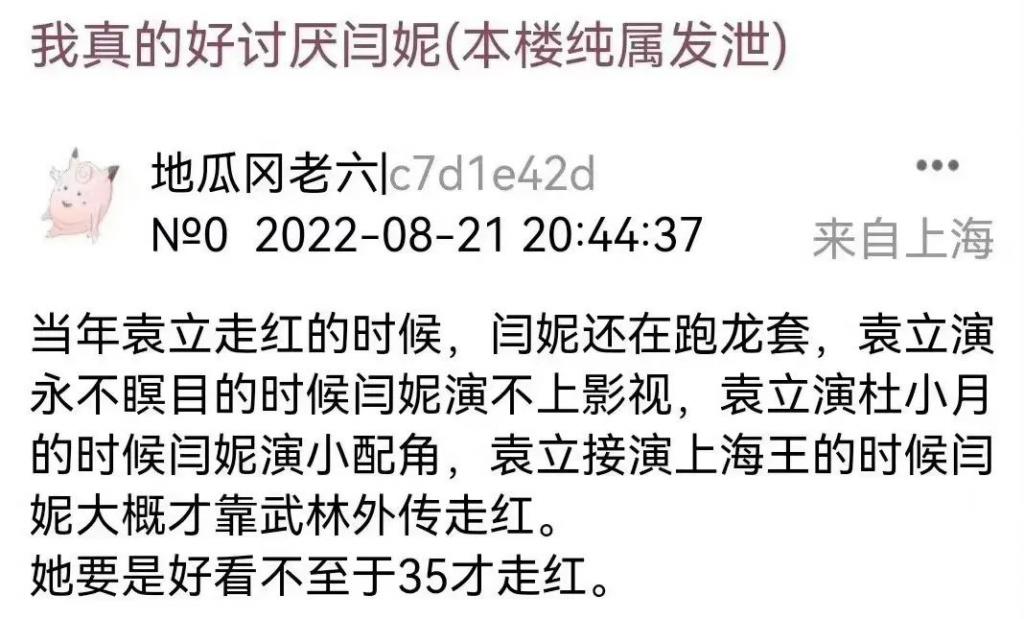 这几天有位自称不是袁立,却被网友高度怀疑是袁立本人的 ID 在兔区(晋江文学城论坛)爆了大量闫妮的料,导致闫妮登上了话题。