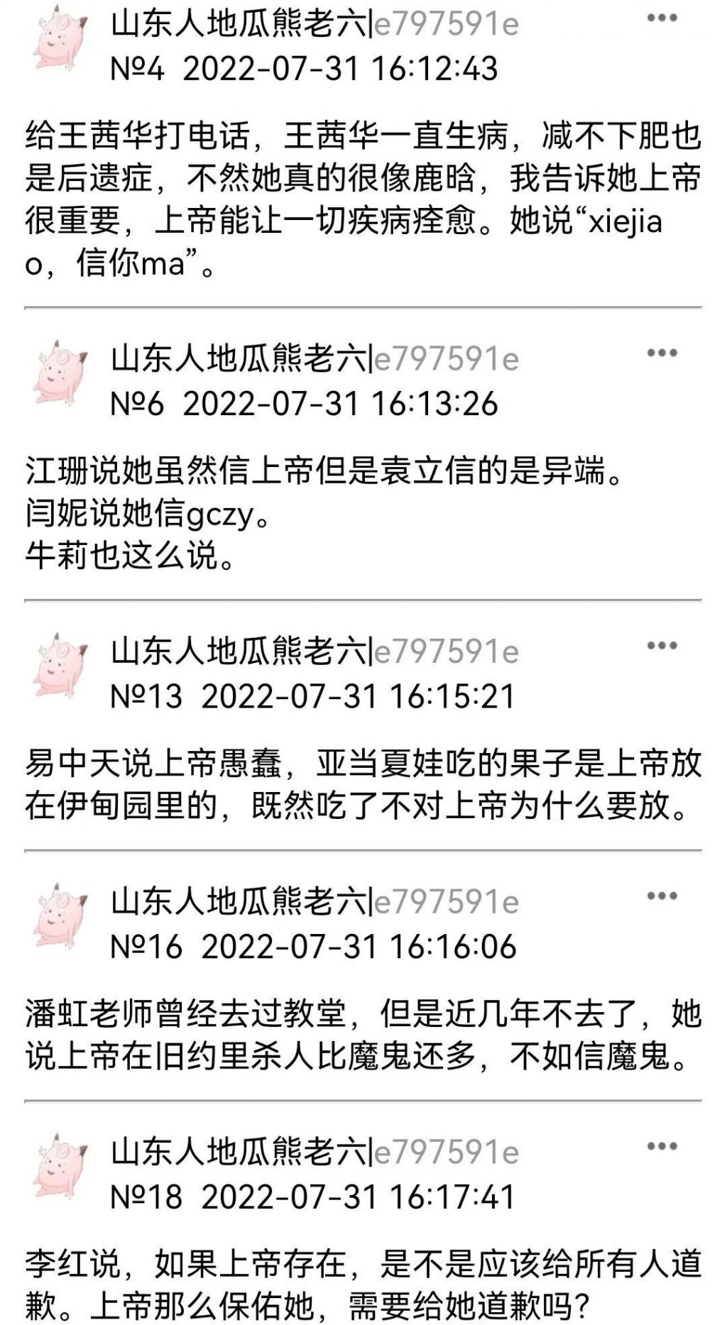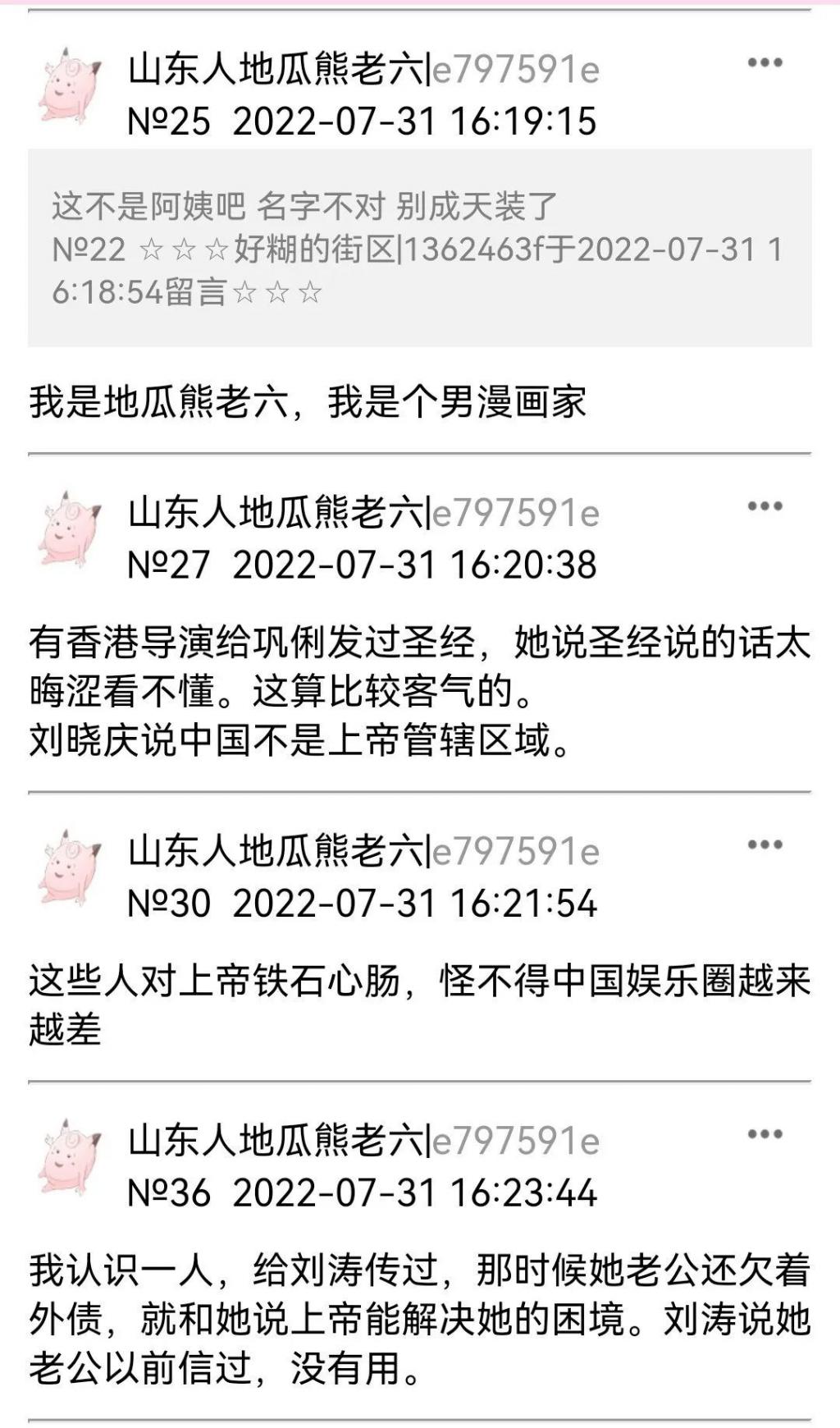 宗教成了她的救赎,她到处传教,四处碰壁,网上有一个她吐槽娱乐圈那些拒绝听她传教的明星们截图,非常可乐,她自己乐此不疲。