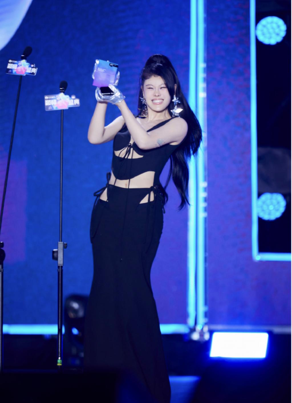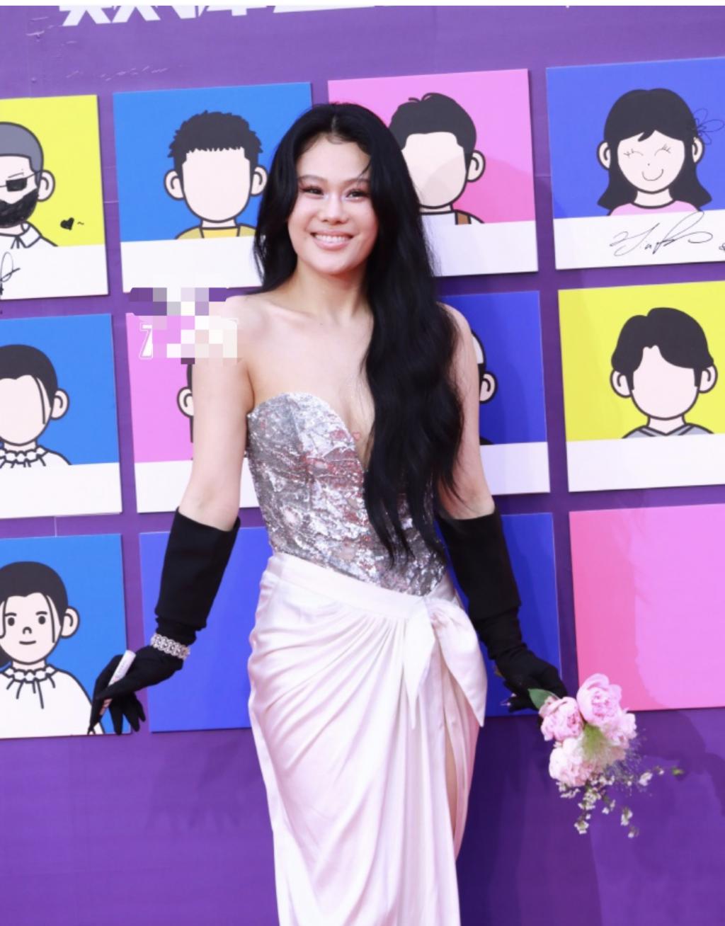 陈嘉桦是《乘风破浪》的冠军,自身实力不成问题,红毯上她走上去也是从容不迫的。