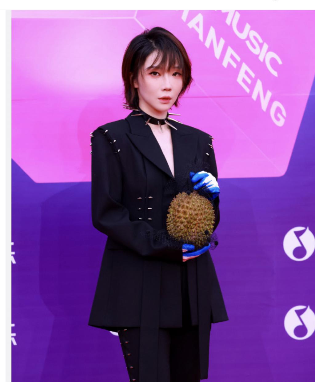 刘恋,这一次带着谐音「榴莲」来走红毯了,看着像个手雷。