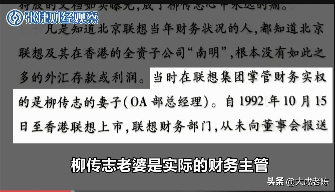 张捷老师关于联想的评论视频,现在发到了30集,在视频中,张捷引用的证据是来自“倪光南传”这本书,据说是倪光南爆料,柳传志夫人龚国兴是北京联想OA部总经理,但实际上是负责联想集团的财务大权,是财务负责人,而且自1992年10月15日至香港联想上市,联想财务部门从未向董事会报送财务报表。