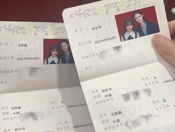 然而就在九月九日,韩安冉再次在社交媒体上宣布自己结婚,并在社交平台上晒出了和老公马泽鑫的结婚证,这已经是她第三次婚姻(包括和小猪复婚的一次),两年三婚也是创造了新纪录。