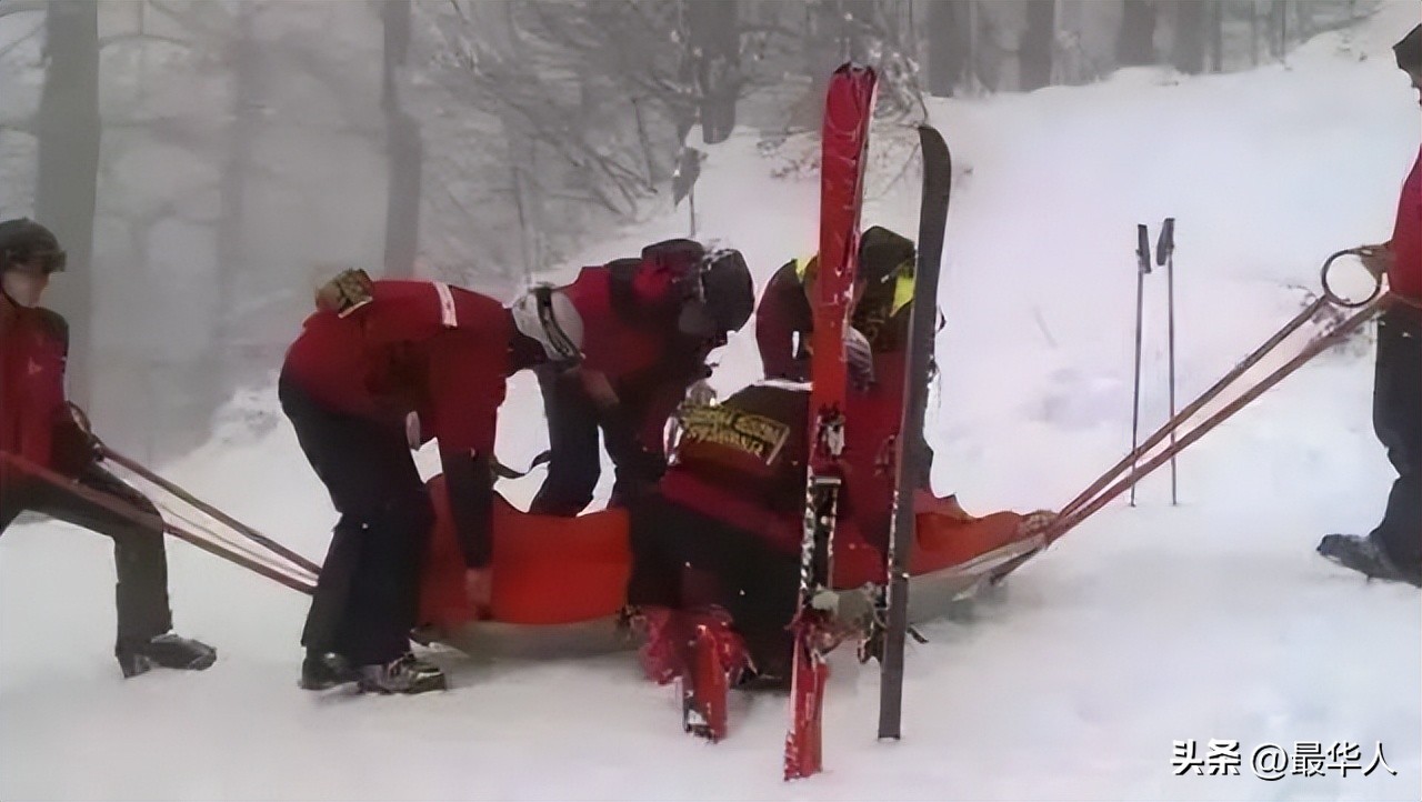 当时速度特别快,即使是像舒马赫这样专业级的选手,依然没能控制,他撞到了积雪下一块坚硬的岩石上,虽然戴着专业的头盔,但脑部还是受到了重创,当即陷入昏迷。