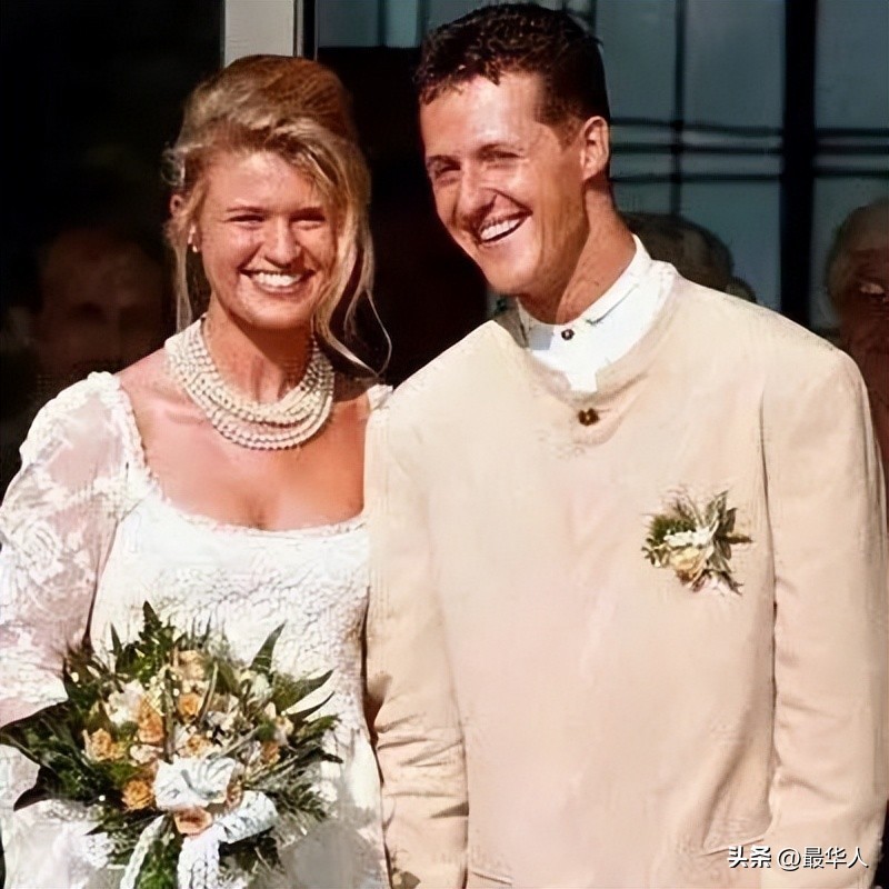 舒马赫拿到世界冠军后,最想做的事就是向女友求婚。1995年,他们在德国古堡举行了盛大的婚礼,婚礼现场两人幸福甜蜜,脸上洋溢着满足的微笑。