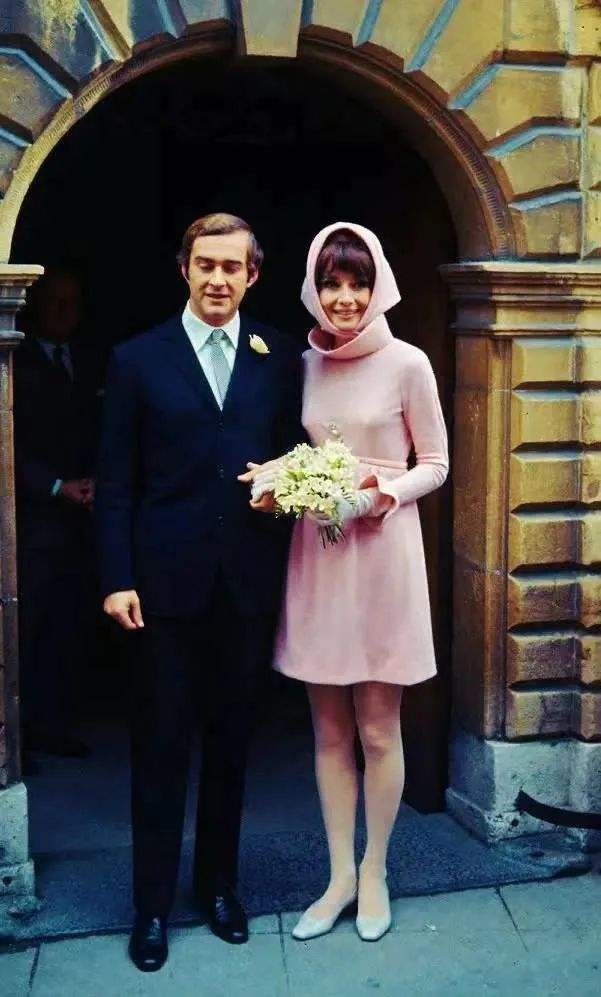 两人的结婚地点选在瑞士。这一次赫本没有穿洁白的婚纱,而是选择了一条粉红色的连衣裙。这个沐浴在爱情中的女人手捧一个小小的花束,再一次走进了婚姻。