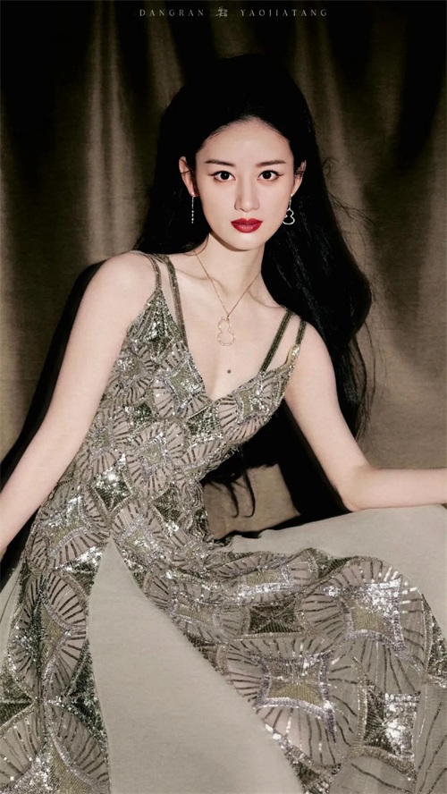 郭晓婷身穿银绿色抹胸深V透视长裙,她俏脸成熟妩媚,秀眸明亮,烈焰红唇,乌黑长发飘逸,露出自己傲人的事业线,胸前还有一颗美人痣,曼妙的身材曲线,绝对性感妖艳!
