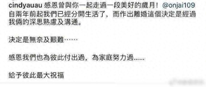 这次的离婚宣言,似乎是对过去的一种交代。在他们的发文中,透露出一丝丝无奈和遗憾:“感恩我们也曾经为彼此付出过,为家庭努力过。”这样的表态,让人不禁想起他们曾经为了彼此的幸福,曾经为了家庭的美满而努力的场景。