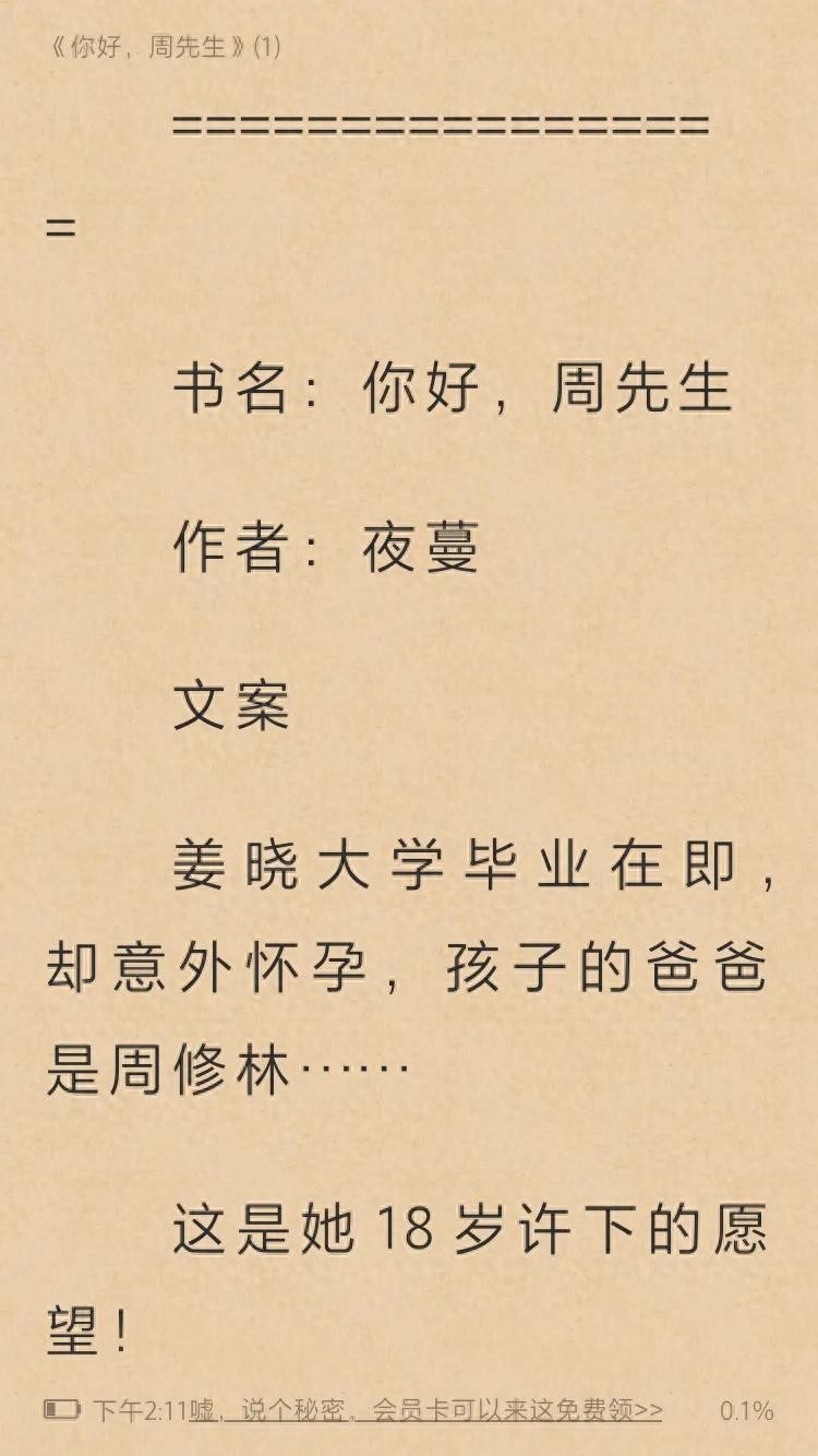 【你好,周先生】作者:夜曼。一篇甜过冰淇淋的现代小言,这篇不仅先婚后爱而且先上车后补票还带一枚小豆芽。剧情虽然比较俗套但是架不住作者文笔好,男女主人设讨喜。女主的性格给我一种牛奶的感觉,又奶又温柔。男主对女主是老牛吃嫩草,温水煮青蛙式宠爱。男女主恋爱互动温馨有趣,碰撞有火花有笑点。