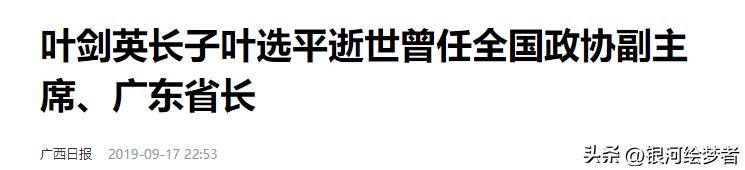 广西日报2019-09-17,关于“叶剑英长子叶选平逝世曾任全国政协副主席、广东省长” 的报道