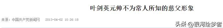 中国共产党新闻网2013-04-02 ,关于“叶剑英元帅不为常人所知的慈父形象”的报道