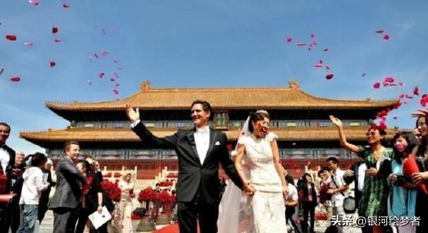 俩人在北京太庙举办了一场婚礼,非常的具有东方美。