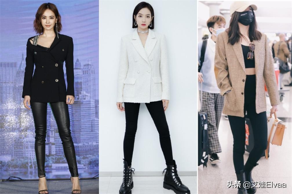 传统西装的打扮大家都是很清楚的,宽松的上衣配上简单的直筒裤,虽然出现违和感的几率很低,但是这样的穿搭还是适合于小白,或者初入职场的女性,对于时髦的小姐姐来说,真的是难以满足,对比之下,西装配紧身裤真的是堪称完美,利用"上松下紧"的穿衣方式,看似简约却呈现出高级吸睛的时髦范,尤其是身材好的女性,在紧身裤和宽松西装的衬托下,毫不吝啬地把腿型给展现出来。