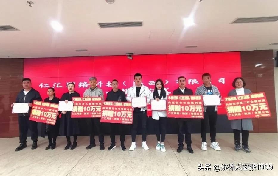 2023年5月10日上午,仁汇网络科技(陕西)有限公司知名主播木森、红豆、建博代表仁汇传媒向延安捐赠50万元公益资金。用于延安市儿童福利院、延安市社会福利院、延安市第二社会福利院、延安市八一敬老院、安塞区沿河湾敬老院的公益事业经费。