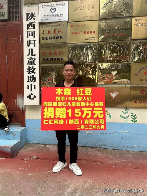 2023年9月9日木森、红豆为感谢粉丝长期以来对木森团队和红豆团队的支持代表粉丝出资15万元捐赠给儿童村,用于儿童村的公益事业经费。