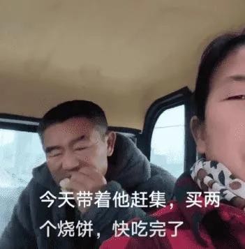 刘侠会带着他一起去赶集,在回家的路上,丈夫坐在车后座,开心地吃着烧饼,那模样就像一个孩子。