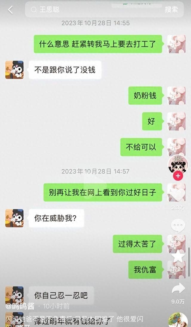 可现在呢?这位"国民老公"突然变成了"负心汉"。网红博主鸣鸣酱爆料说,自己和王思聪有个3岁的闺女,而王大少居然说自己没钱给孩子买奶粉?!