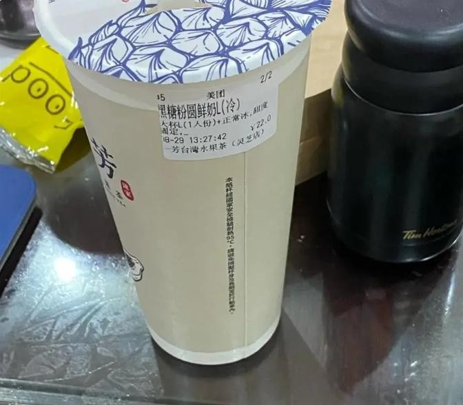 8月29日下午6时57分,名为“一拳打走瞌睡虫”的网友在社交平台发图片,图片显示手掌中有一黑色异物,该网友询问平台其他网友们:“这什么东西,从奶茶喝出来的。”8月30日凌晨1时58分,该网友再次发布一张图片,图片中有一杯印有“一芳台湾水果茶”字样的奶茶杯。