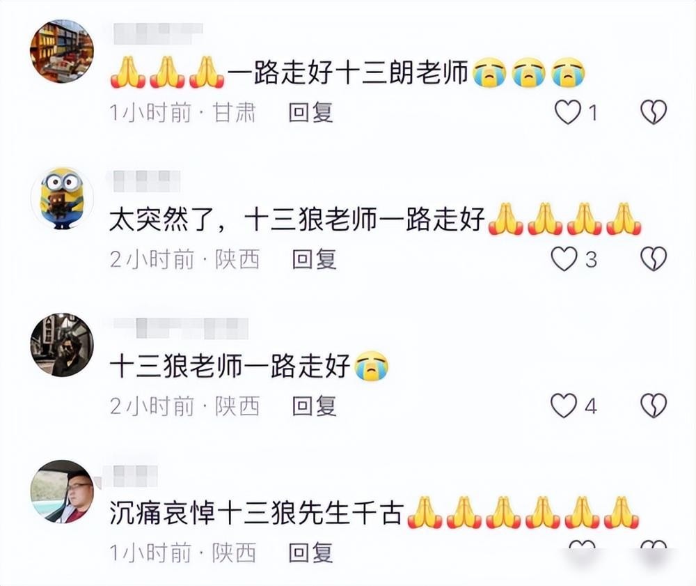 没想到在前不久十三狼还活跃在网络上,而这次突然离世的消息让许多人都难以接受。