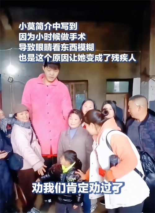 小莫不光眼睛看不太清楚,从视频中也可以发现她的腿脚不是太好。