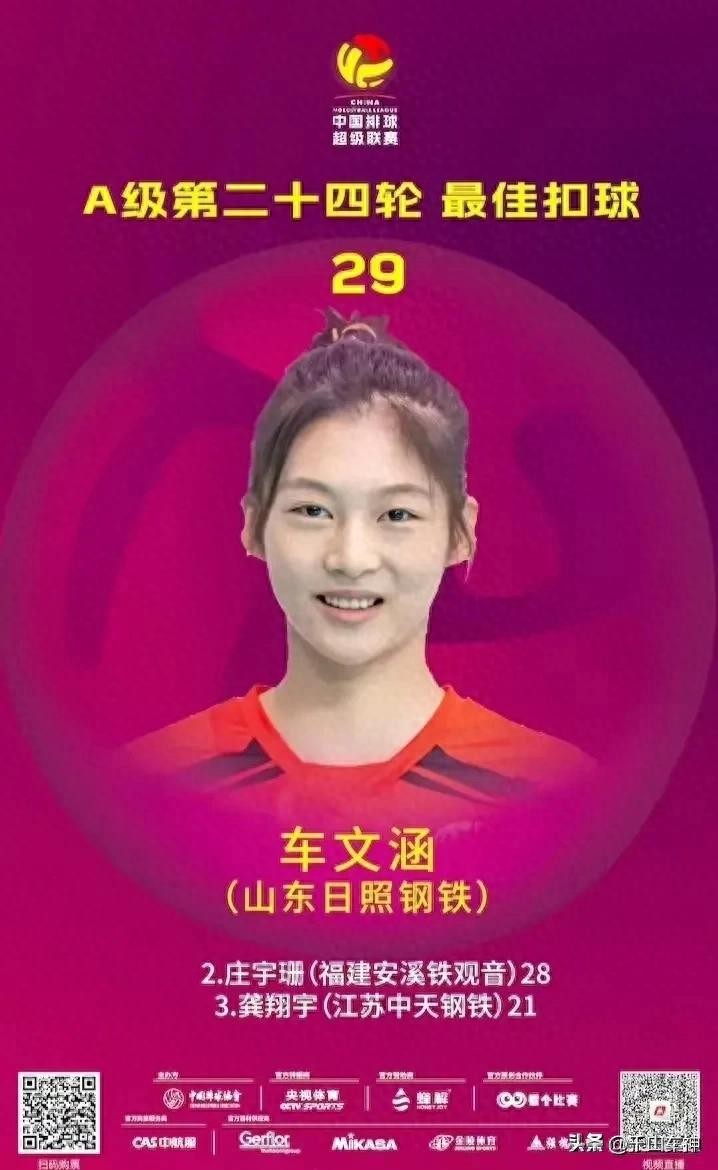 不过,18日女超联赛季后赛F组山东女排与福建女排的一场比赛,车文涵第一局替补出战,换下表现欠佳的接应孙杰,没想到这次换人给了车文涵一展身手的机会。本场比赛,车文涵66扣29中3被拦,进攻成功率43.9%、进攻效率39.4%,拿下全队最高分,这也是她近几天创下的单场得分记录,山东女排3:1逆转战胜福建队她是第一功臣。